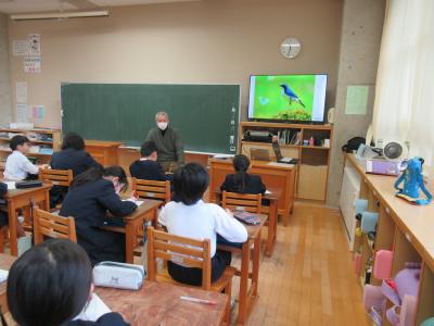 4年生が総合的な学習の時間に美川の自然、野鳥について学びました。ゲストティーチャーとして地域の濱上さんが来校し、これまでに撮影されたたくさんの写真を見せていただきました。子どもたちは美川のすばらしさを改めて感じていました。