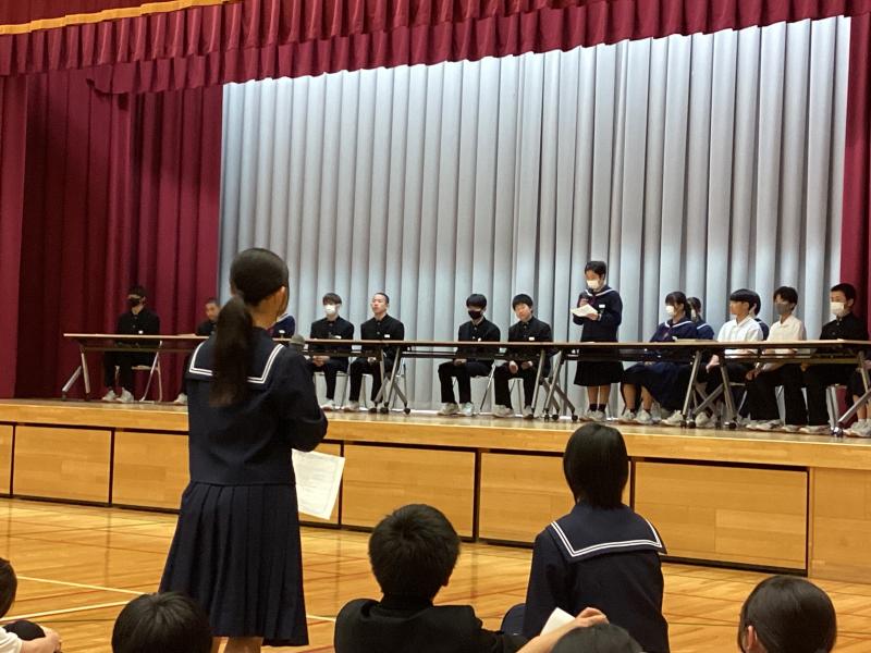 生徒会執行部や各委員会、各学年の室長会の取組に対して、各学級からたくさんの質問や意見が出されました。