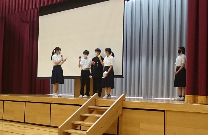 話し合ったことや、自分の考えを、 全校の前でしっかり発表できました