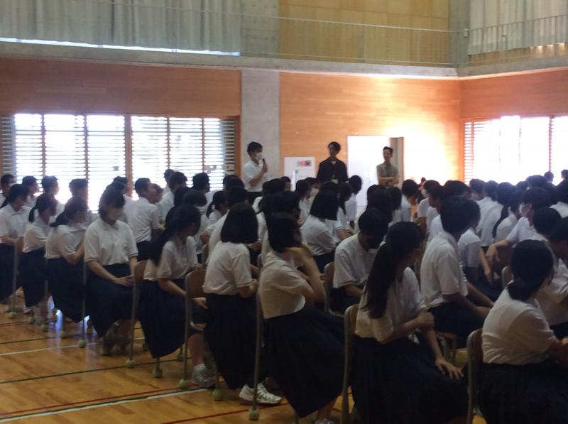 大会やコンクールに出場する部の選手たちは、全校生徒の前で、試合に向けた意気込みを立派に宣言していました。
