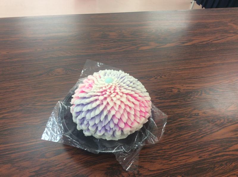 その後、「はさみ菊」を作る中村さんの職人技を間近で見せていただき、最後は部員の立てたお抹茶と一緒に、お菓子をいただきました。和菓子づくりの難しさや繊細さ、楽しさを実感でき、貴重な経験になりました。
