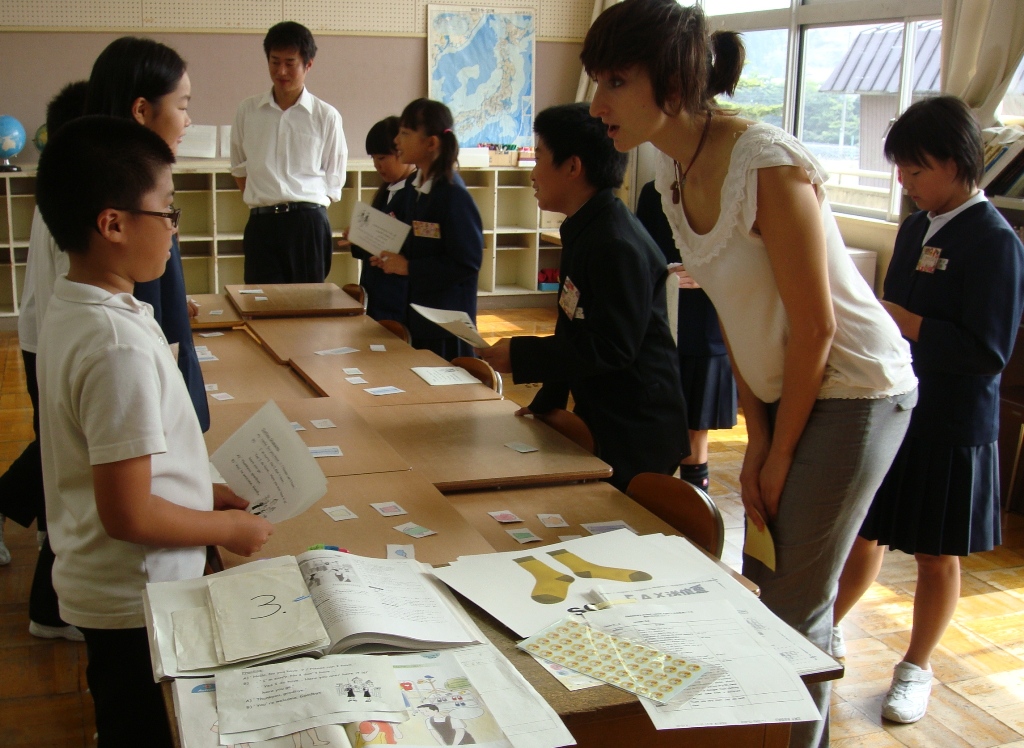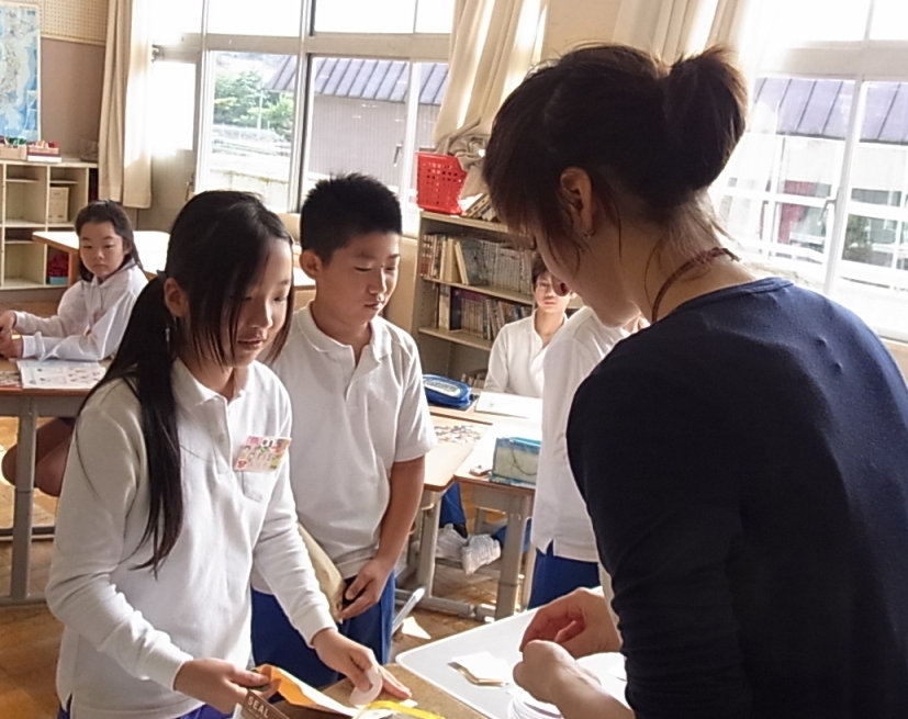 外国語は、間違っていても恥ずかしがらず、大きな声で繰り返ししゃべることが上達の近道です。加賀市では、外国の人と会う機会はほとんどありません。年間35時間の英語活動の時間だけが、ネイティブスピーカーの生の発音を聞けるチャンスです。明るく元気なミリ先生とこれからもたくさんしゃべりして英会話に慣れましょう。