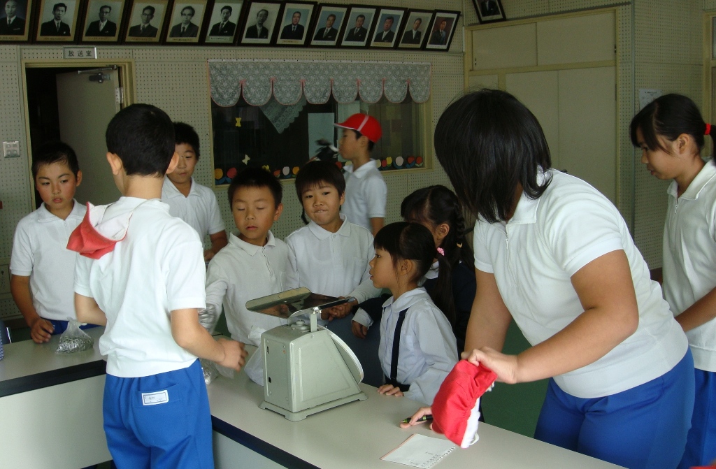 店で働く人は、どんな工夫をしているのかスーパーへ見学に行きました。質問したいことをカードに書いて、働く人にインタビューをしました。普段入ることの出来ない売り場の奥も見せてもらい、肉のパック詰めや惣菜作りなど、お客さんにたくさん来てもらうためのさまざまな工夫を聞きとって来ました。良い勉強になりました。