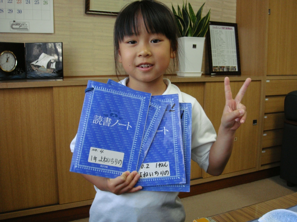 ①読書ノート・・・4月から記入している読書記録ノートが2冊終了し3冊目の子が1年生で3人もいます。ノートは1冊に100冊記入できます。