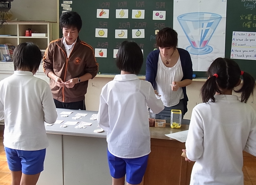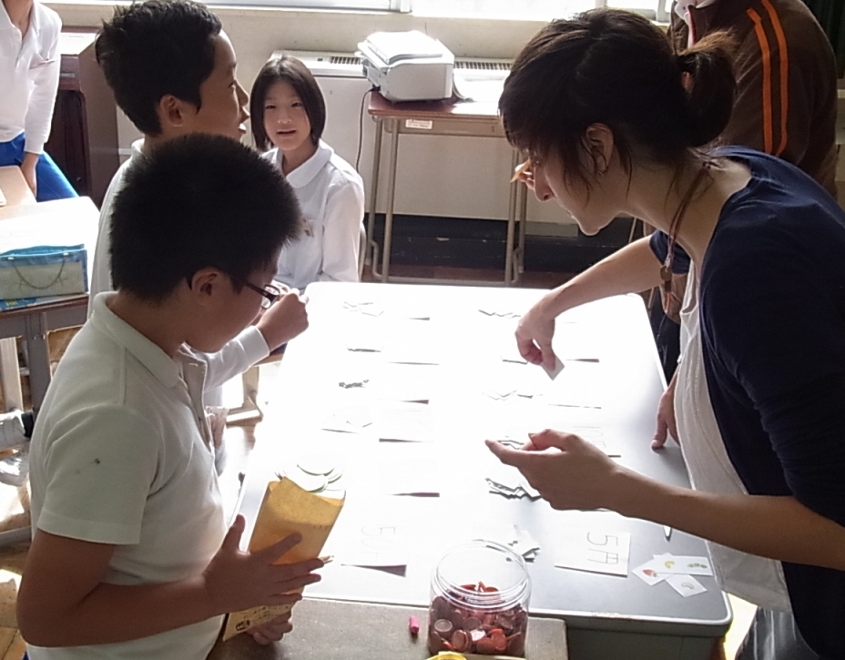 5,6年生は、ミリ先生と英語活動をしています。5年生は、洋服の買い物ごっこをしていました。店員さんとお客さんになって「赤いTシャツはありますか?」「いいえ、ありません。」など楽しく英語でしゃべっていました。6年生は地図を見ながら、建物を英語で答えていました。