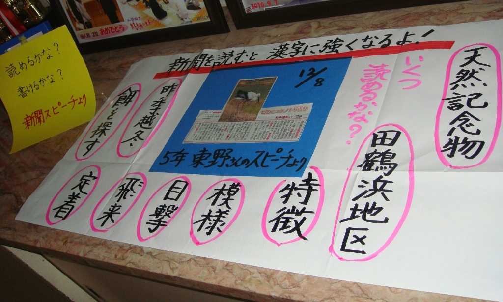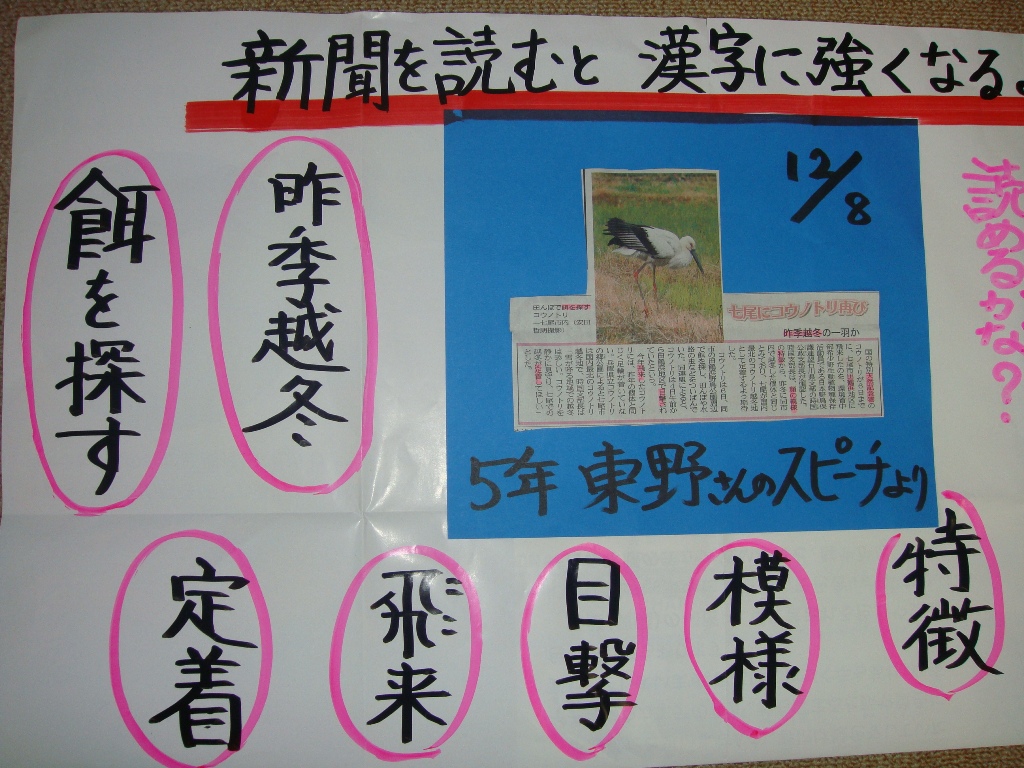 新聞を読んで内容を要約し、自分の感想を言う「新聞スピーチ」を継続して取り組んでいます。