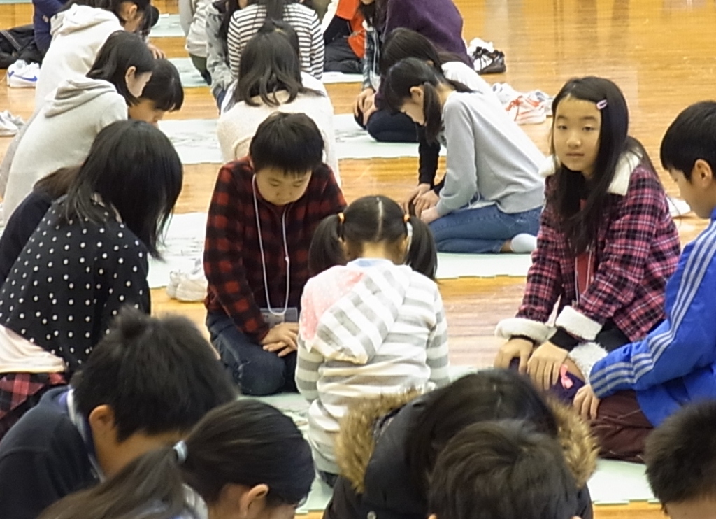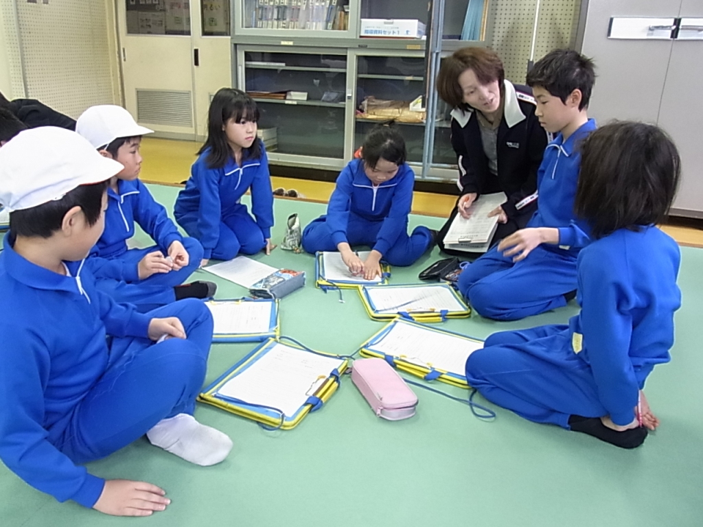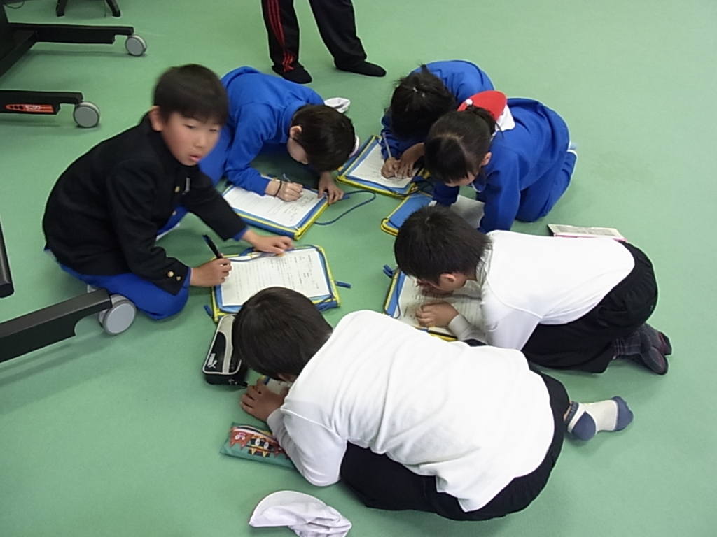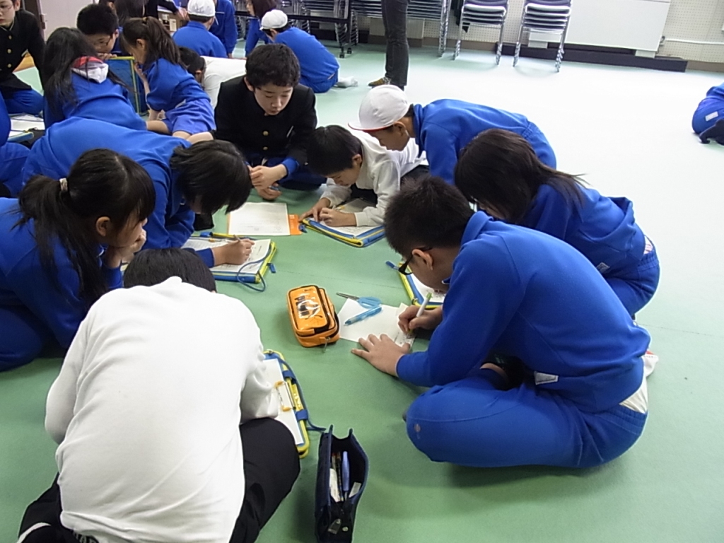 16日で6年生が卒業のため、新1年生も含めた新登校班を決めました。地区ごとに集まり、集合場所や時刻を相談しました。5年生が今度はリーダーです。仲良く安全に登校できるよう、協力し合って登校しましょう。