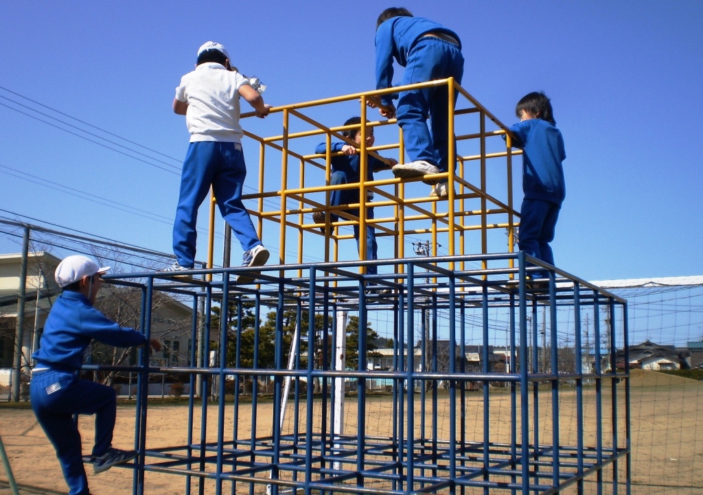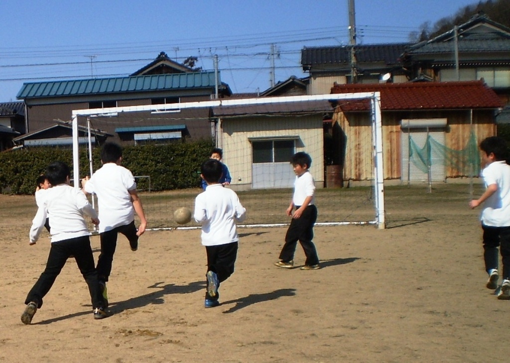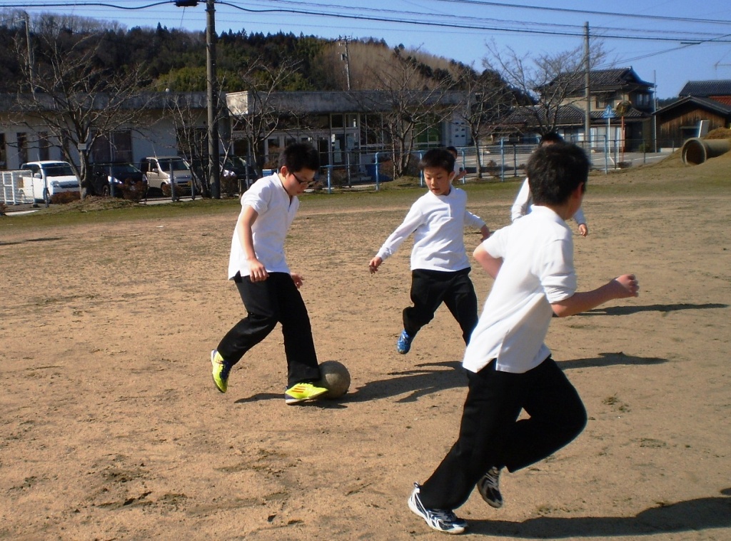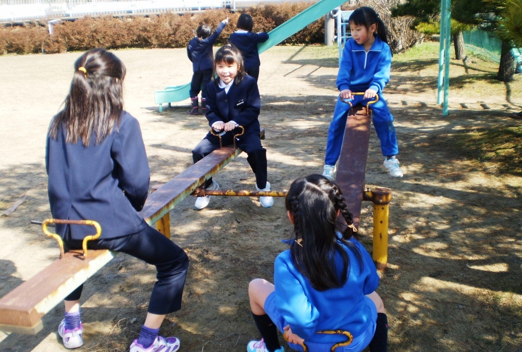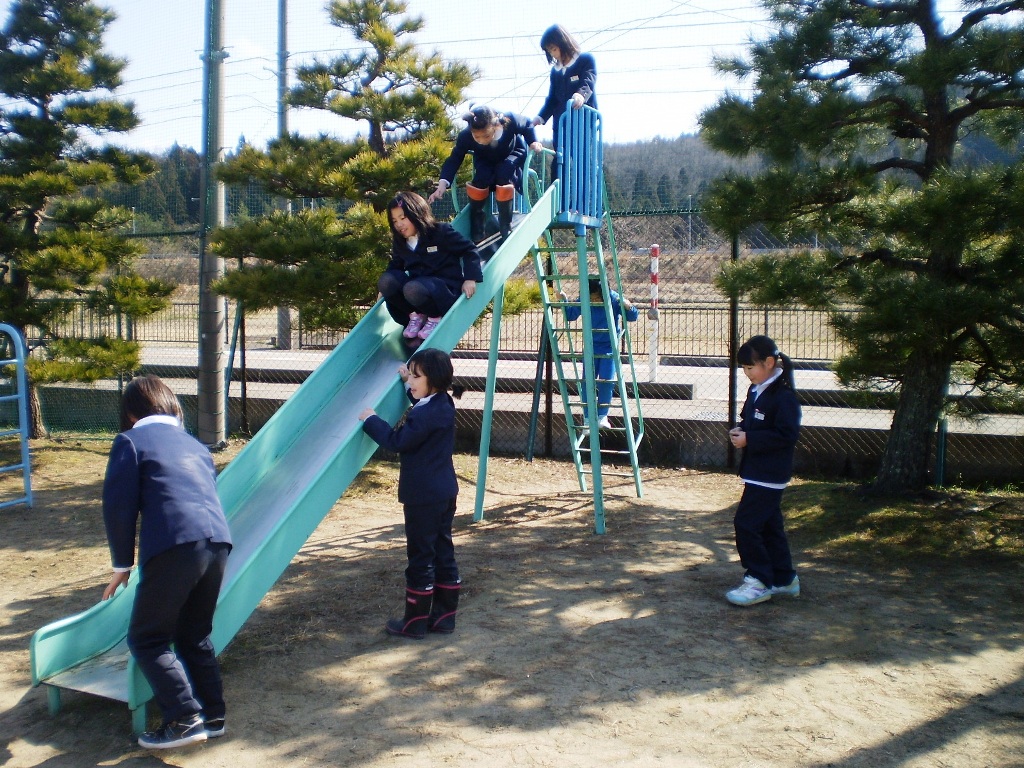 風もなくぽかぽか陽気の昼休みとなりました。三木の子は、運動場へ飛び出し、友達と遊びに夢中でした。上着を脱ぎサッカーボールを追いかける男子。ブランコやシーソー、滑り台、ジャングルジムと、冬場は使われていなかった遊具に、今日は子ども達の笑顔がいっぱいあふれていました。