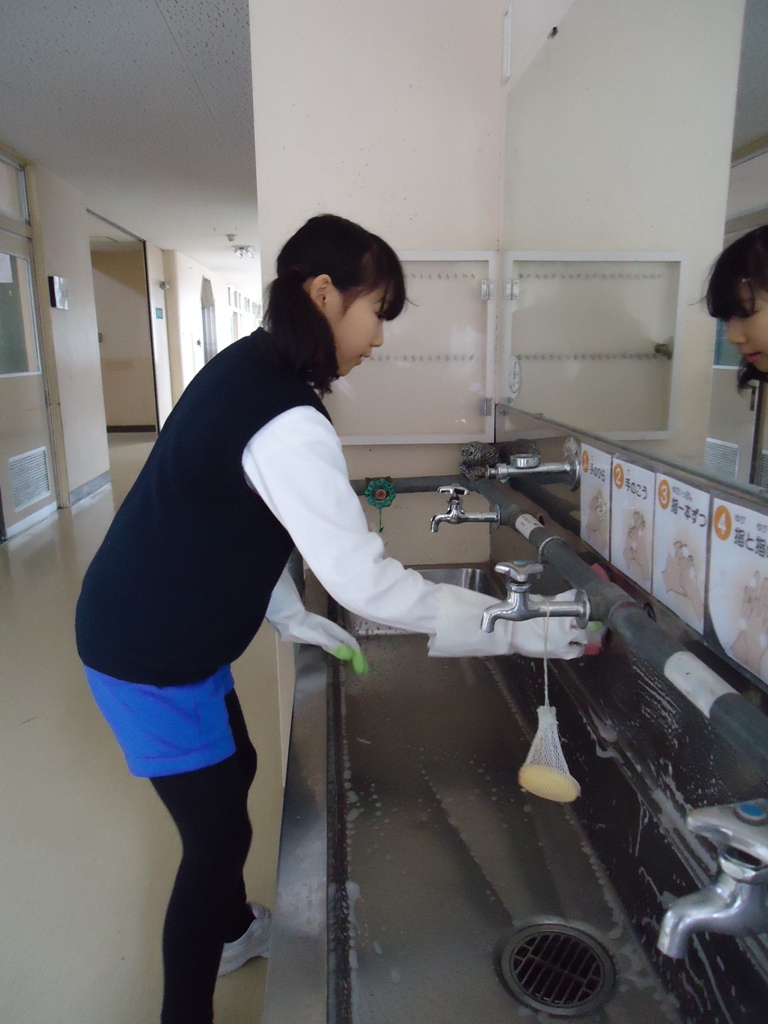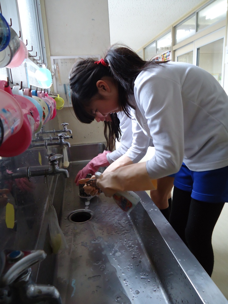 卒業式まで、あと9日と迫った6年生が、お世話になった校舎に感謝の美化作戦をしました。日ごろの掃除ではなかなか綺麗にできない、手洗いの排水溝などを磨きました。「立つ鳥跡を濁さず」と言います。これからも、母校を愛する気持ちを大切に卒業式まで過ごしてほしいです。