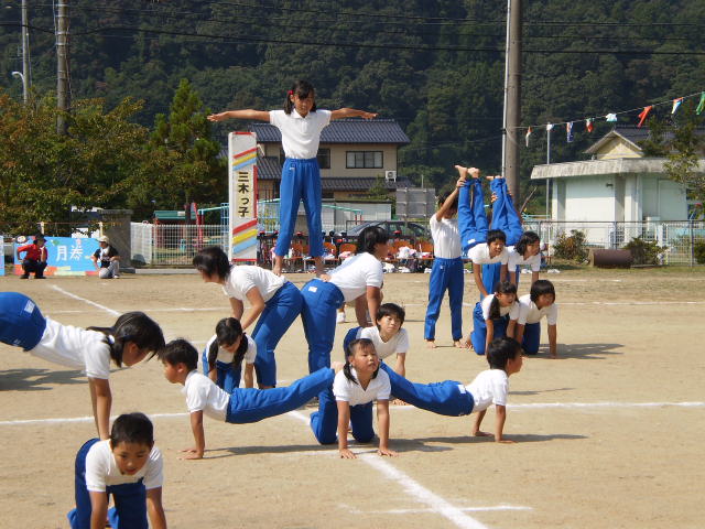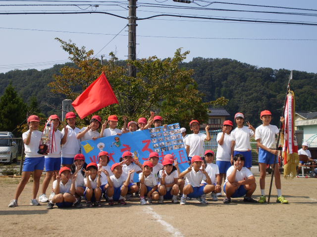 今日は、秋晴れの下運動会が開かれました。早朝から、来賓や保護者の方々が応援に来て下さり、子どもたちは、力いっぱい競技や演技にがんばりました。全校児童50名、最後までだれも、怪我もなくやり遂げました。素晴らしい運動会でした。
