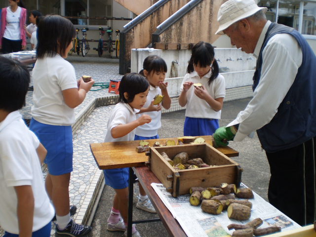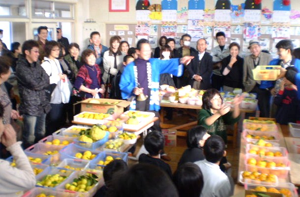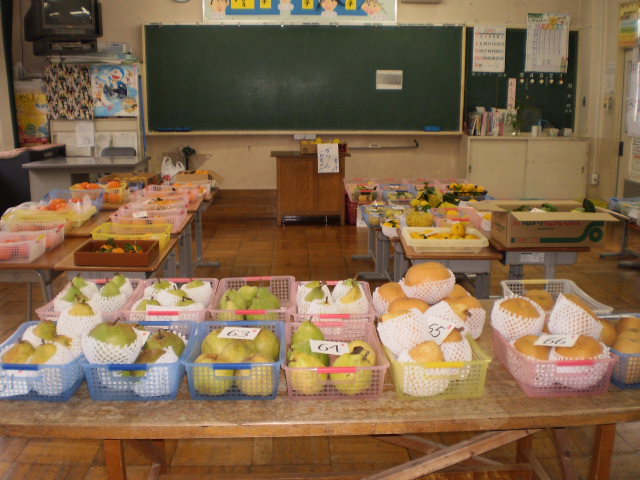 バランス良い食事をとるために、「毎日旬の果物を200g食べましょう」というキャンペーン事業の一つとして、奥谷町の梨農家、奥村さんが、お話をして下さいました。そして、給食に豊水梨が付き、帰りに一人に一個ずつ家に持って帰りました。 三木地区は、県下でも有数の梨生産地です。そんな旬の梨を毎日摂って、丈夫で健康な体で過ごしてほしいです。 今は、梨、ぶどう、いちじくが旬ですね。これから、みかんやりんご、柿なども出てきて「食欲の秋」真っ盛りです。地産地消を心がけ、旬の果物をこれからもできるだけ摂取していきたいものです。