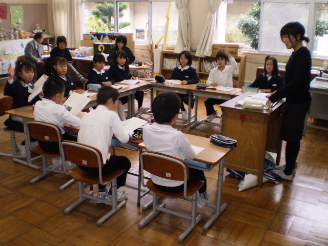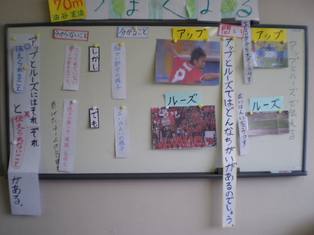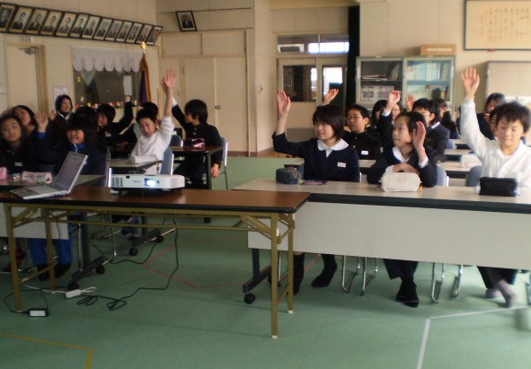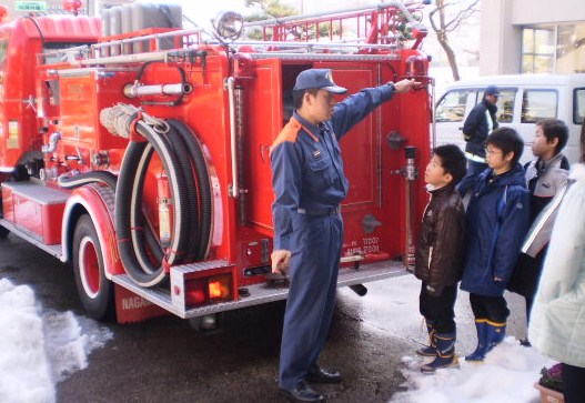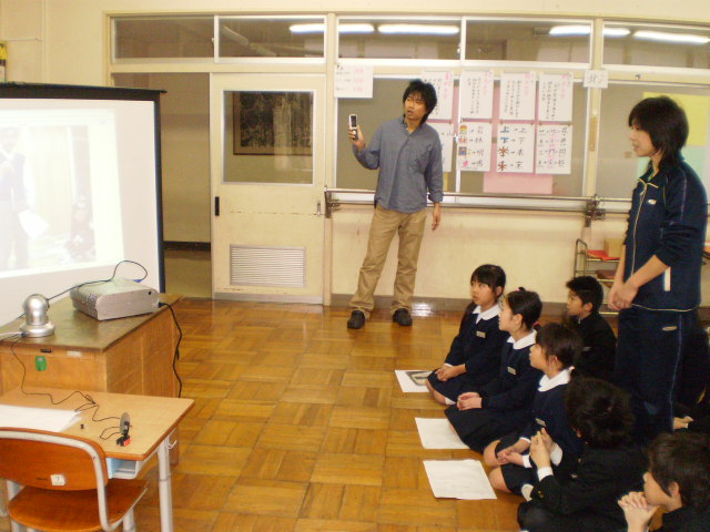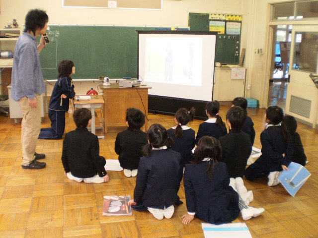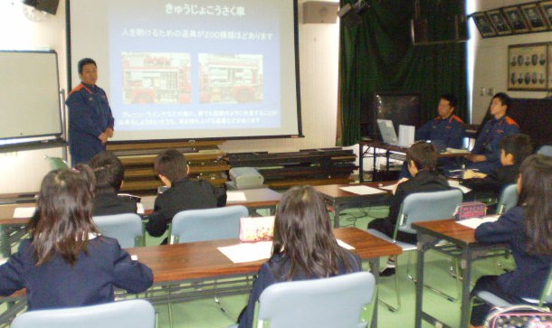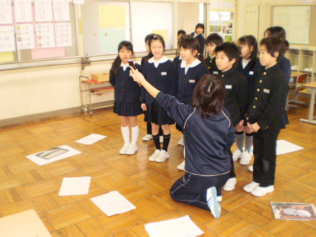 本校の3年生と市内作見小学校3年生の1クラスが、インターネットウェブカメラを使って初めて授業交流しました。社会科授業「火事がおきたら」の単元で、学校周辺の消防施設について調べたことを発表しあい、比較し、火災に備える仕組みの理解を深めました。テレビ電話のように相手の様子が映し出され、児童は緊張しながらも、貴重な体験ができました。