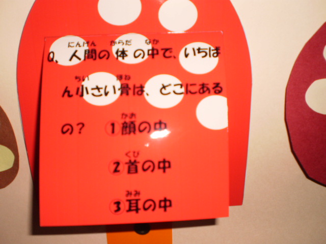 9月の保健目標は「丈夫な体をつくろう」です。運動会も間近なので、玉入れの玉を使かって体に関するクイズを作り、掲示しました。秋の青空のように、健康に毎日が送れるといいですね。