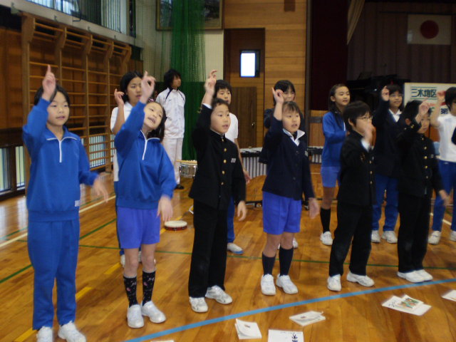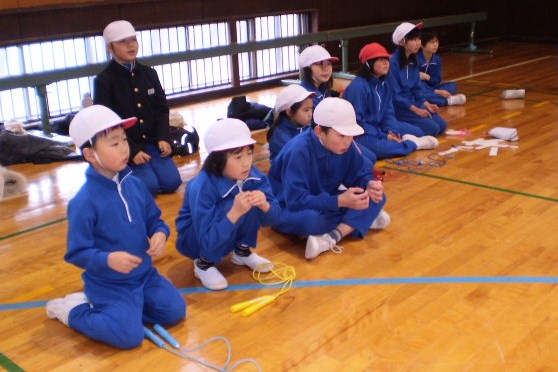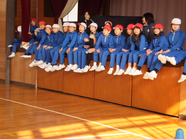 全校を4班に分けて、個人種目にも得点を付け、その合計点で競い合う縄跳び大会は、運動会のように盛り上がりました。学年ごとに種目別にチャンピオンを決める内容以外に、三木小学校ならではのプログラムがありました。大縄跳びと、縄跳びリレーです。リレーは前跳び20回か二段跳び10回をリレーでつなげていくのです。大縄は何回連続で跳べるかを競争しました。毎日休み時間に班ごとに、熱心に練習する光景が見られました。苦手な1年生に必死で教えたおかげで3.4回しか飛べなかった班が、本番ンは見事27回連続し、1位になったのには感動しました。小規模校ならではの縦割りの助け合いが、あちらこちらでたくさん見られ、心温まる縄跳び大会でした。