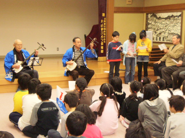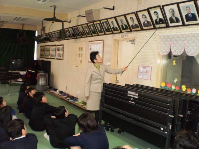 全校集会で三木小学校の校歌ができた背景や歴史についパワーポイントを使ってて説明しました。99年前の三木小学校誕生の経緯、三木校賛歌の誕生、そして三木小学校校歌について古い写真や先輩方の胸像や扁額などの意味も交えて伝えました。みんな興味深く真剣に聞いていました。また、明後日行われる郷土かるた大会に出場する18名に激励のエールをみんなで送りました。是非、優勝トロフィーをまた持ち帰られる事を期待しています。