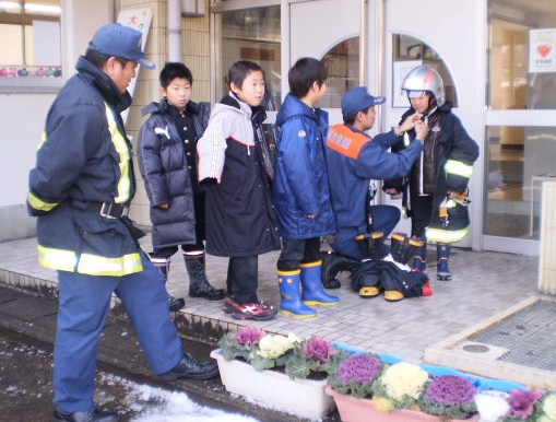 海や川でおぼれた時には服を着ています。濡れて重くなった服や靴を身につけていても、水に浮き助けを求めることができるように、着衣泳を指導してもらいました。消防隊員7人の方々がやさしく教えてくださいました。横歩きやたて歩きをしたりペットボトルをつかんで浮いたり・・・溺れそうになったら、あわてず、身近なものにつかまって体を浮かせ、助けを呼ぶことが大事です。