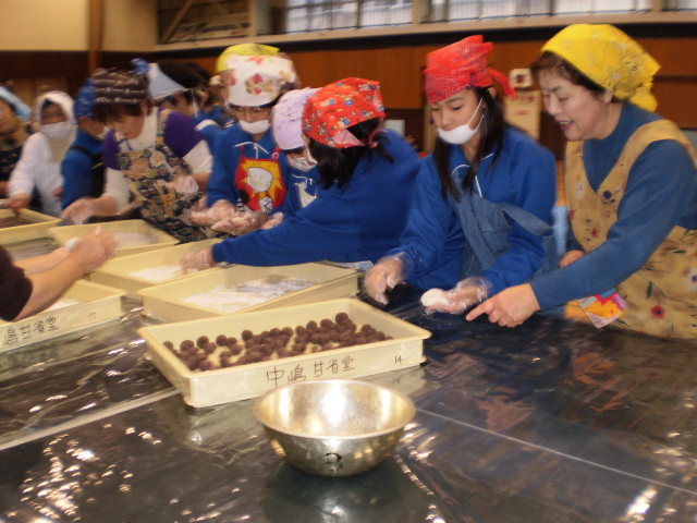 白い餅にあんこを包むところが一番難しかったです。