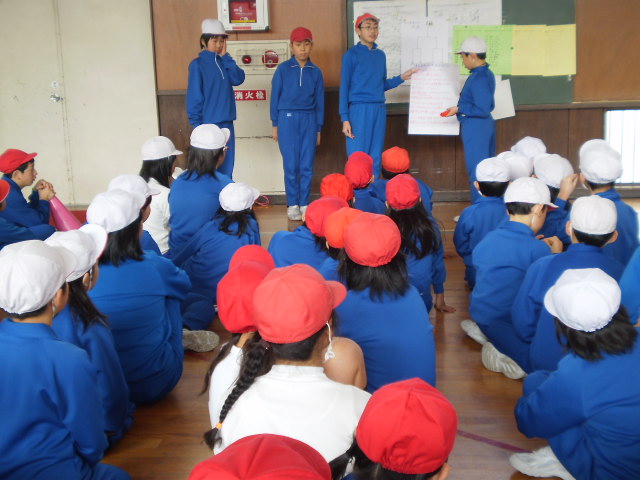 2月18日に行われる「校内なわとび大会」に向けて4つの仲良し班が決まりました。仲良し班では、6年生が中心になって昼休みに練習します。大会では、個人種目の他に班対向の「大縄とび」があります。