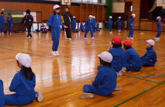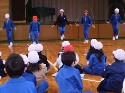 上級生が跳び方を紹介 仲良し班で給食