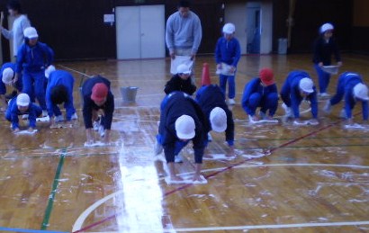 みんなで体育館掃除