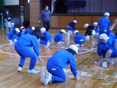 寒い日が続いていますが、三木の子はみんな元気いっぱいです。昨日と今日の昼休み全校一緒に、体育館を掃除しました。洗剤で汚れを取った後、水ぶきしました。体育館を4つに区切り、縦割りの仲良し班で1年生も6年生も混じって仲良く拭きました。6年のリーダーさんが、バケツの水を替えたり一番進んで働いていました。さすが6年生です。