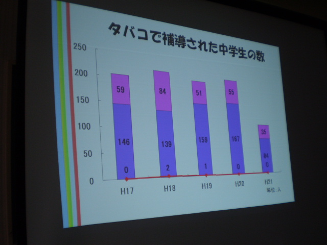 タスポの導入で、中学生の補導件数がぐっと減ったことなど。