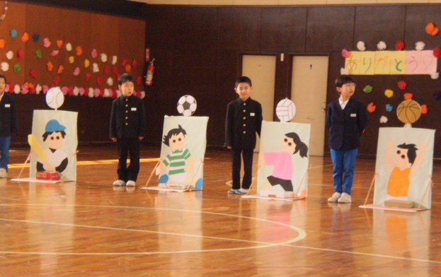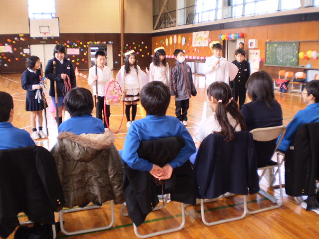 今日の3・4限、卒業する6年生をみんなで感謝の気持ちを込めて送る会をしました。学年ごとに出し物や、ゲームを工夫し、楽しいひと時を過ごしました。出し物の最後に「写真立て」や「パソコンで作ったカレンダーや手作りペン立てなどをプレゼントしました。6年生は、少しはにかみながらも、顔いっぱいに嬉しさがあふれていました。6年生と過ごせるのも後2週間ほどになりました。これからも残りの時間を大切にして欲しいと思います。