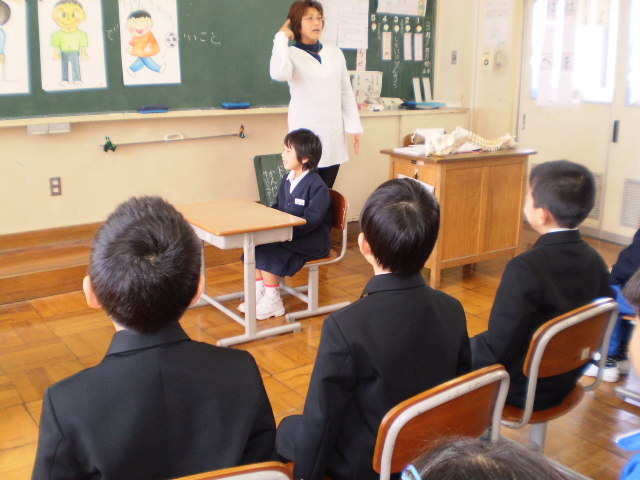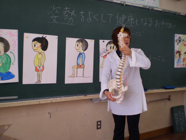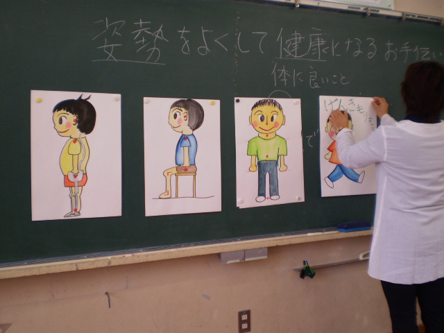 唱えながら、その通りするとみんな大変良い姿勢になりました。授業中に、姿勢が悪くなったら、また、みんなで唱えながら、正しく良い姿勢で健康に過ごしたいと思います。