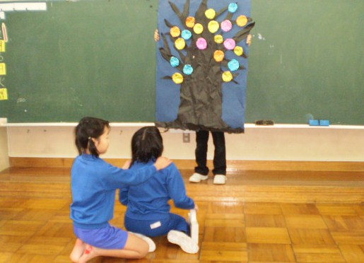 2,3年生のはなまるパーティーのときに,しいのきで宝探しを企画しました。