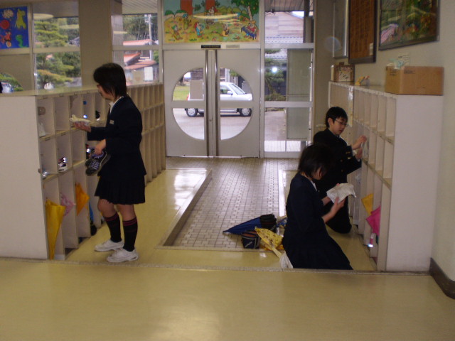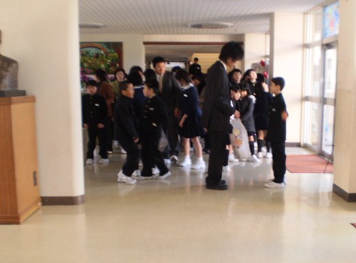 今日から2学期が始まりました。一段とたくましく日焼けした顔は、楽しかった夏休みの思い出を、物語っているようでした。全国的に感染拡大が心配される新型インフルエンザ対策の一つとして、今日から、登校直後に玄関で手を消毒することになりました。教育委員会から消毒液が配布されました。