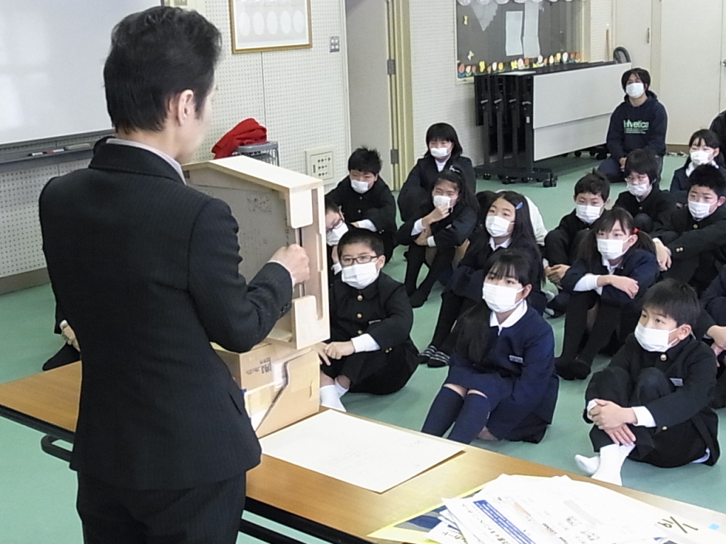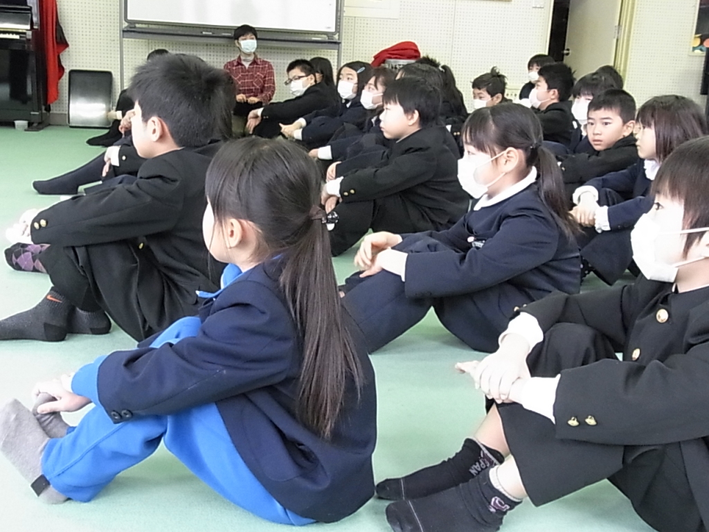 節分が間近なので鬼の話の紙芝居をしました。2月の目標をそれぞれ担当の先生が話しました。みんな真剣に聞いていました。