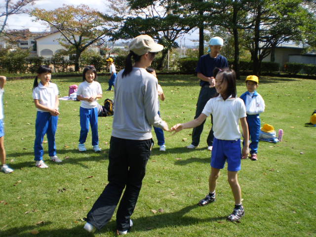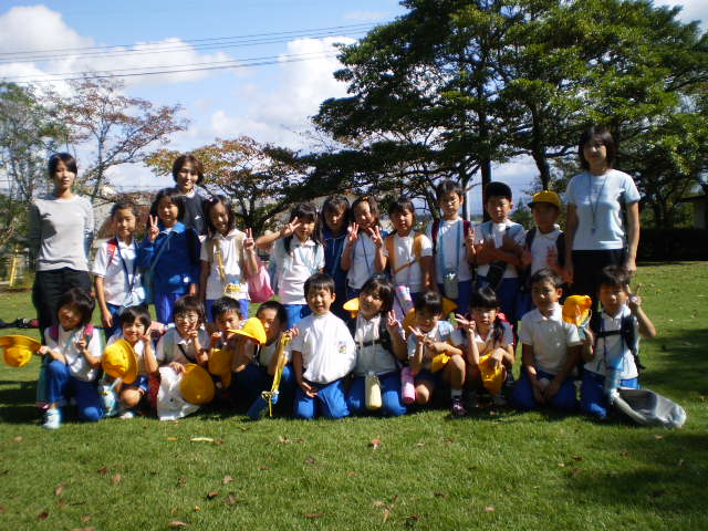 錦城山下の芝生で遊んだよ 1・2・3ねんで集合写真
