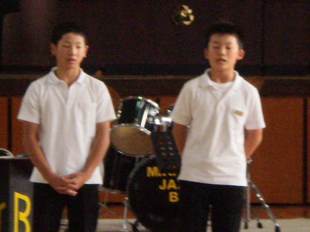 明日は、加賀市小学校音楽会です。6年のジャズバンドが出場します。今日は、全校児童を前に、演奏を聞かせてくれました。今まで聞いた中で、一番上手な演奏でした。