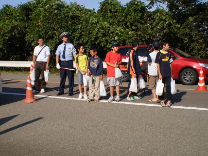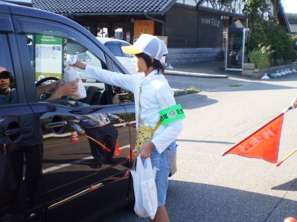 今日は、5連休最初の土曜日です。永井町にある「うさぎの里」前で、恒例の「交通事故なし運動」が行われました。5・6年児童が、交通安全に向けた一言メッセージを書いたカードと、奥谷町特産の「豊水なし」を、ドライバーに渡し、交通安全を呼びかけました。連休初日とあって、県外ナンバーの家族連れの車も目立ちました。