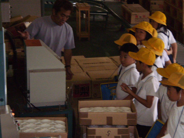 3年生が、社会の勉強で、三木地区奥谷町にある梨の選果場へ見学に行って来ました。「なし農家のひみつをさぐろう」と、事前に自分たちが質問したいことを考えて、一人ひとりが聞きました。案内してくださったのは、奥村さんです。おかげで、いろいろなことが分かりました。