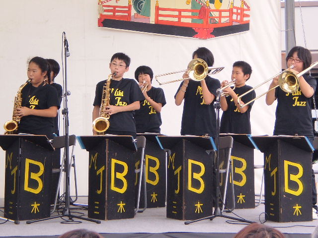 13日(日)の十万石祭に、三木小学校ジャズバンドが出場しました。観衆の前で、演奏するのは、これで4回目です。回を重ねるごとに、自信が付き6年生12名は、堂々と演奏していました。観客の方々から、大きな拍手をもらい、満足そうでした。