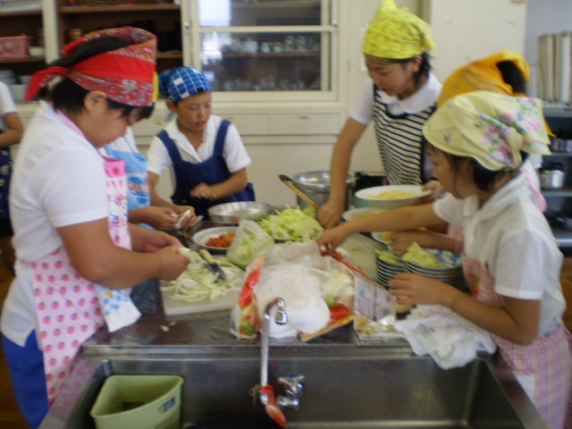 学期末お楽しみ会として、グループごとにメニューを考え、野菜を使った料理をしました。