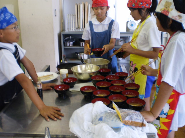 なすの味噌汁、トマトのスパゲティーなど友達と協力して完成させました。