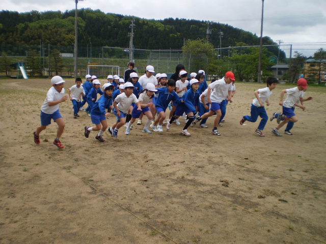 毎週金曜日の長休み時間に、全校で「パワーアップタイム」を今年度から取り組むようにしました。今日は、少し小雨の降る肌寒い日でしたが、全校児童は元気に運動場へ出て走りました。自分の体力アップを目的に、5分間で運動場を何周走ることができるか、挑戦します。走った距離は、「マラソンカード」に記録していきます。みんな張り切って走っています。