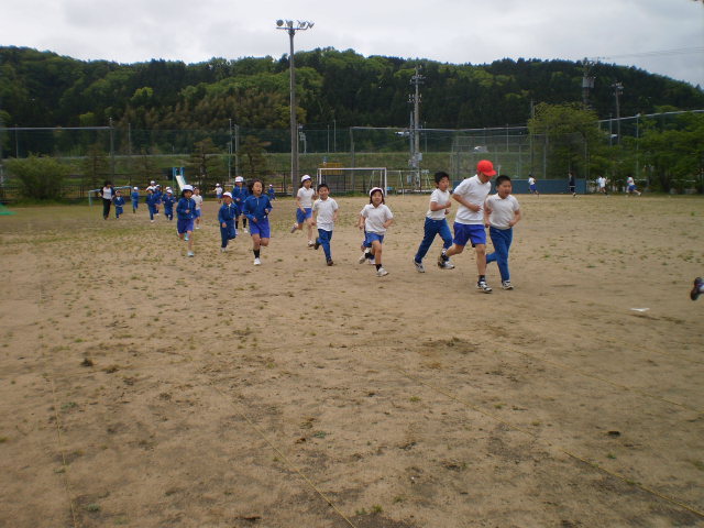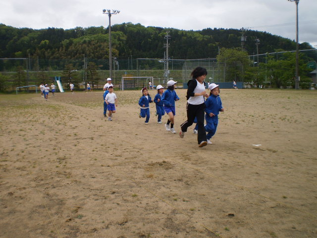 先生も一緒に走ります 今日は、何周走れるかな?