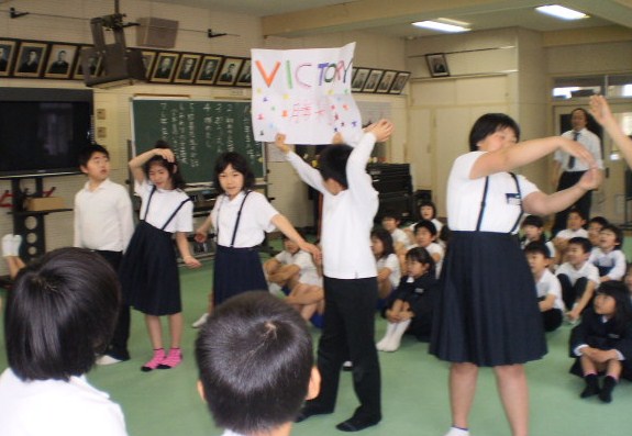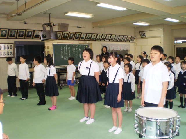 1~5年生が、元気いっぱい「応援歌」を歌って激励しました。
