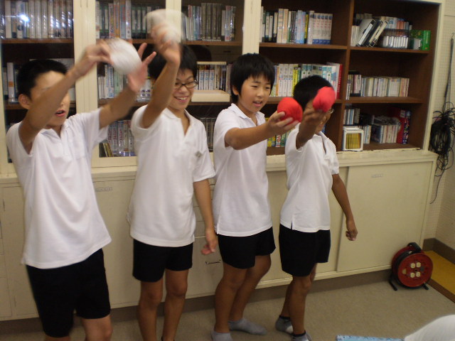 9月26日に運動会があります。全校児童を4つの縦割り班に分けて、競い合います。今日は、4人の班長が放送室に集まり、色決めの抽選を、ビデオで各教室に生放送しました。メンバーの名前発表もあり、大いに盛り上がりました。6日は、4つの班の結束を高めるために、班別に集まって一緒に給食を食べます。こうして段々、仲間意識を高めていきます。