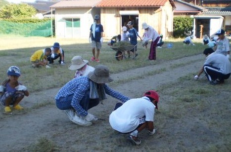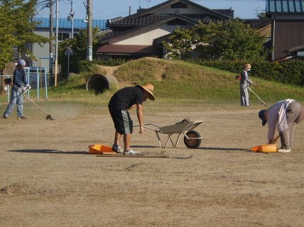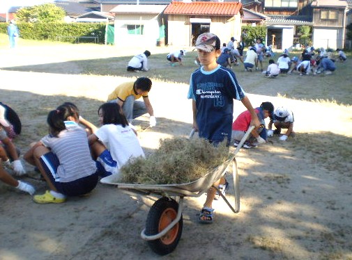 大変暑い中、9月4日(土)に運動場除草作業がありました。早朝から、三木小学校同窓会長さんや、まちづくりの方々も草刈り機を持ってきて応援に来て下さいました。
