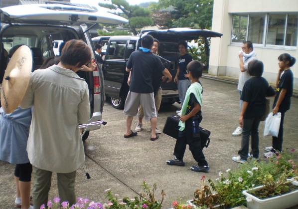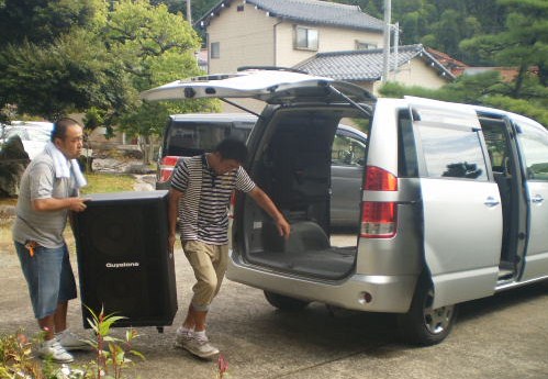 重い楽器を車に積み込みました。 お父さんのワゴン2台に乗せて