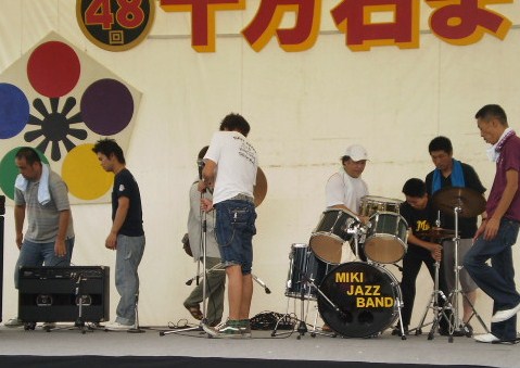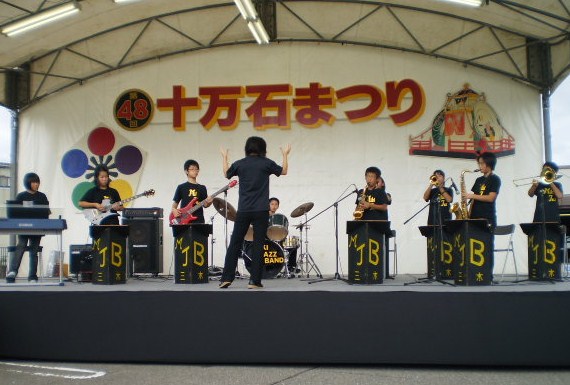 日曜日に、大聖寺で十万石祭りがあり、ジャズバンドが出場しました。朝から、楽器の運搬に協力いただいた保護者の皆様、暑い中どうもありがとうございました。