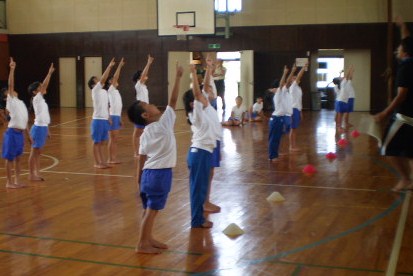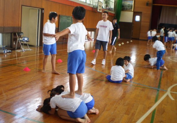 運動会で1年生から6年生まで全員で、スタンツをします。今日から全体練習が始まりました。高学年が、低学年に一生懸命指導し、低学年は、真剣に聞き頑張っている姿がとてもほほえましく感じられました。