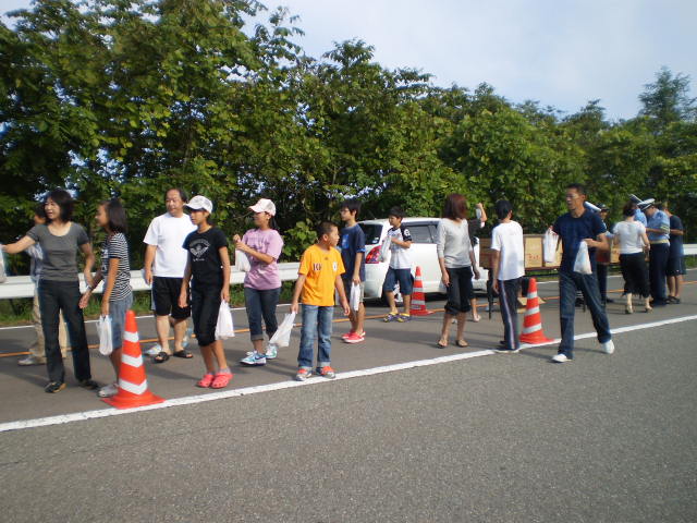 今日8:00から、永井町で、交通安全運動のキャンペーンをしました。5,6年生が、メッセージを書いたカードと奥谷町の梨などが入った袋をドライバーに手渡し、「安全運転して下さい。」と声をかけながら頑張りました。3連休の初日と会って多くの車や、オートバイが止まり、「ありがとう。」と笑顔で受け取ってくれました。