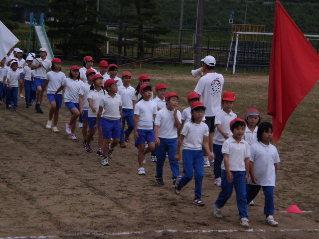 9月26日(日)は運動会です。今日は、運動場に出て開会式やスタンツの練習をしました。朝は小雨が降っていましたが、それも止み曇り空の涼しい日となり、みんな一生懸命練習しました。