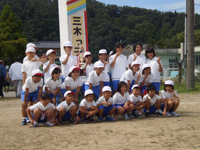 真っ青な秋晴れの元、三木小学校運動会が開かれました。