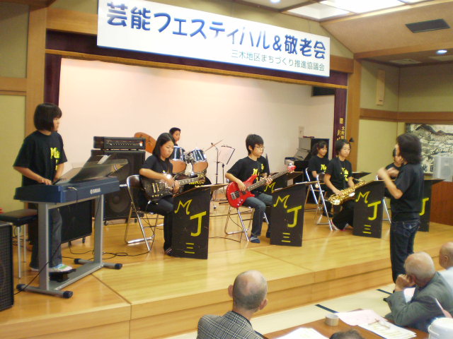 10月3日(日)に三木地区「芸能フェステォバル&敬老会」が開かれました。6年ジャズバンドも演奏を披露しました。日頃、学校に来られないお年寄りの方々にも、きいて頂き大きな拍手をもらいました。